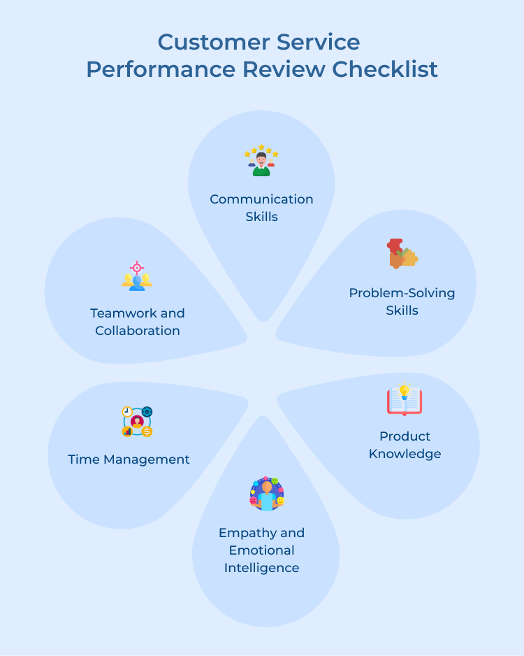 • Communication skills: Good communication is essential in customer service, as employees need to be able to clearly convey information to customers and empathize with their concerns. Performance reviews could assess employees on their tone of voice, ability to listen actively and use of positive language in interactions with customers.